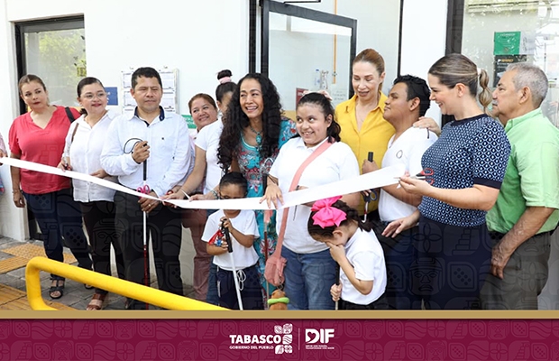 Para fortalecer el proceso de rehabilitación e inserción laboral de las personas con discapacidad visual, la Presidenta Honoraria del Sistema DIF Tabasco, Profa. Aurora Raleigh de la Cruz, inauguró el área de Capacitación Laboral, en el Centro de Atención Integral para Ciegos y Débiles Visuales (CAICDV).
