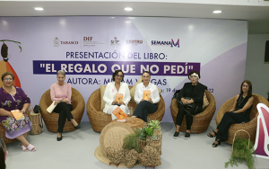 En el marco de la Semana M, Mujeres Inspirando Mujeres, la presidenta del Sistema DIF Tabasco, Lic.Guadalupe Castro de Merino, asistió la tarde de este miércoles a la presentación del libro "El regalo que no pedí", escrito por Miriam Vargas.